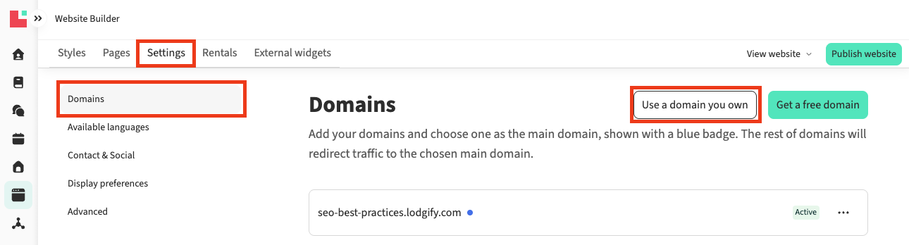 - Or you can link an existing domain: if you already own a domain (e.g with GoDaddy, Namecheap etc), you can link it to Lodgify.