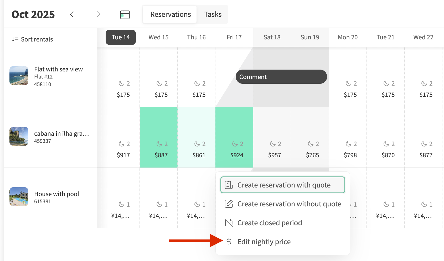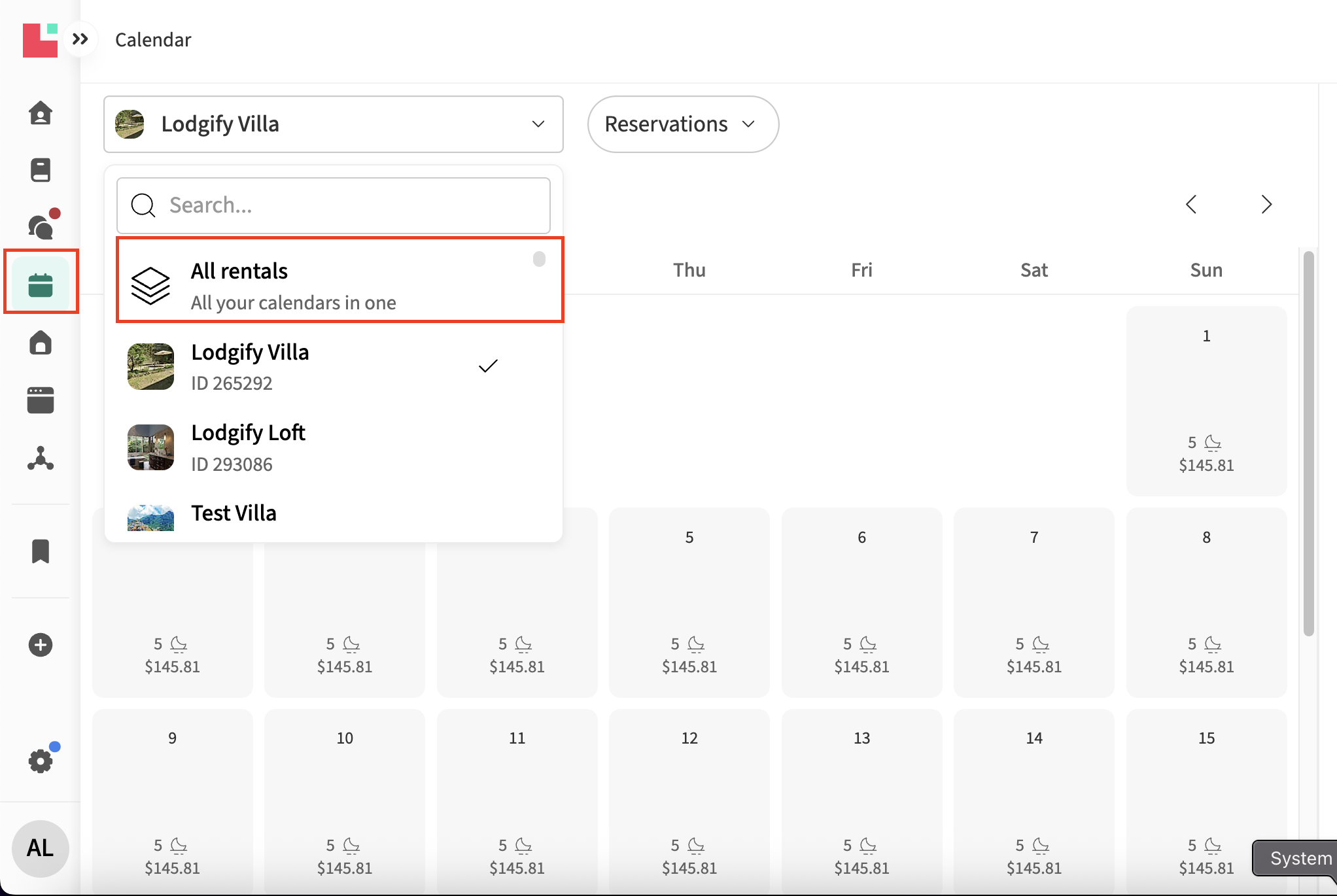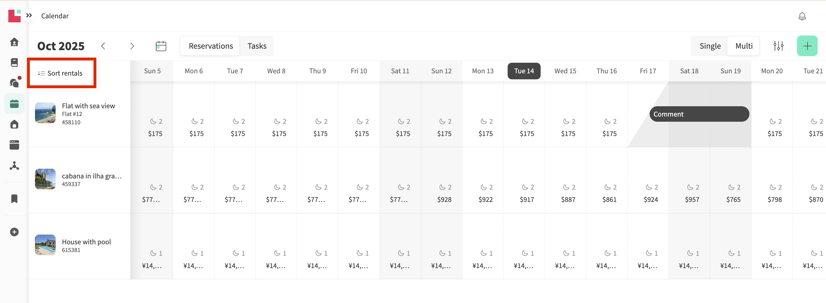 | Sort rentals | Multi | At the top left of the calendar, you can sort and choose which rentals you want to see. By selecting Customize rental list, you can hide rentals or rearrange the order in which they appear. This information is saved in your browser, so if you use a different device, your sorting preferences won’t be visible. |