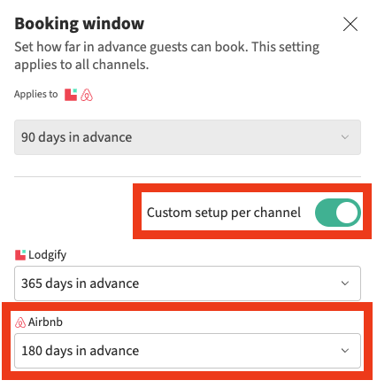 If you have added a custom setup per channel to your availability settings, your availability in Airbnb might differ from Lodgify. To check your settings, follow these steps: