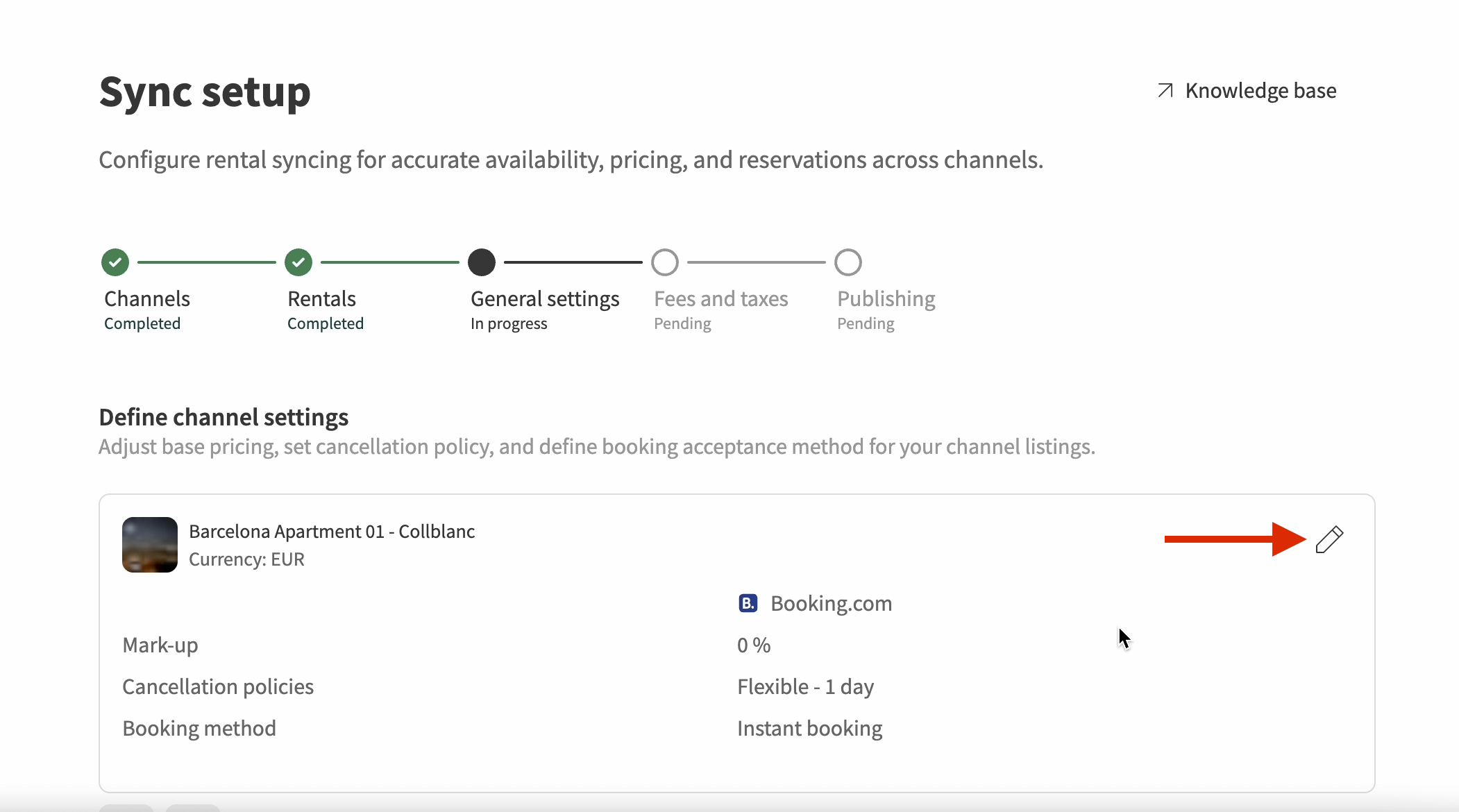 - You can view and edit your Booking.com settings for each rental by clicking the pencil icon.