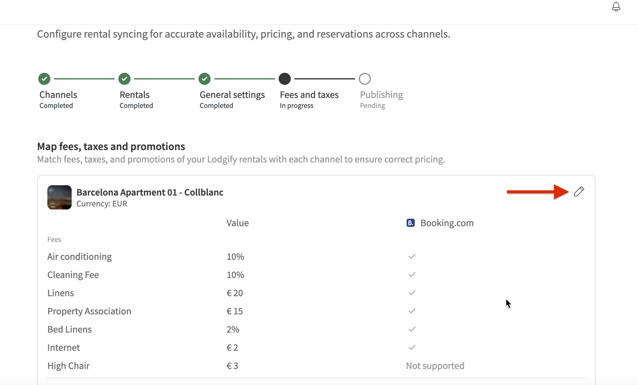 - You will be able to review how your Lodgify fees and taxes are sent to Booking.com for each rental.