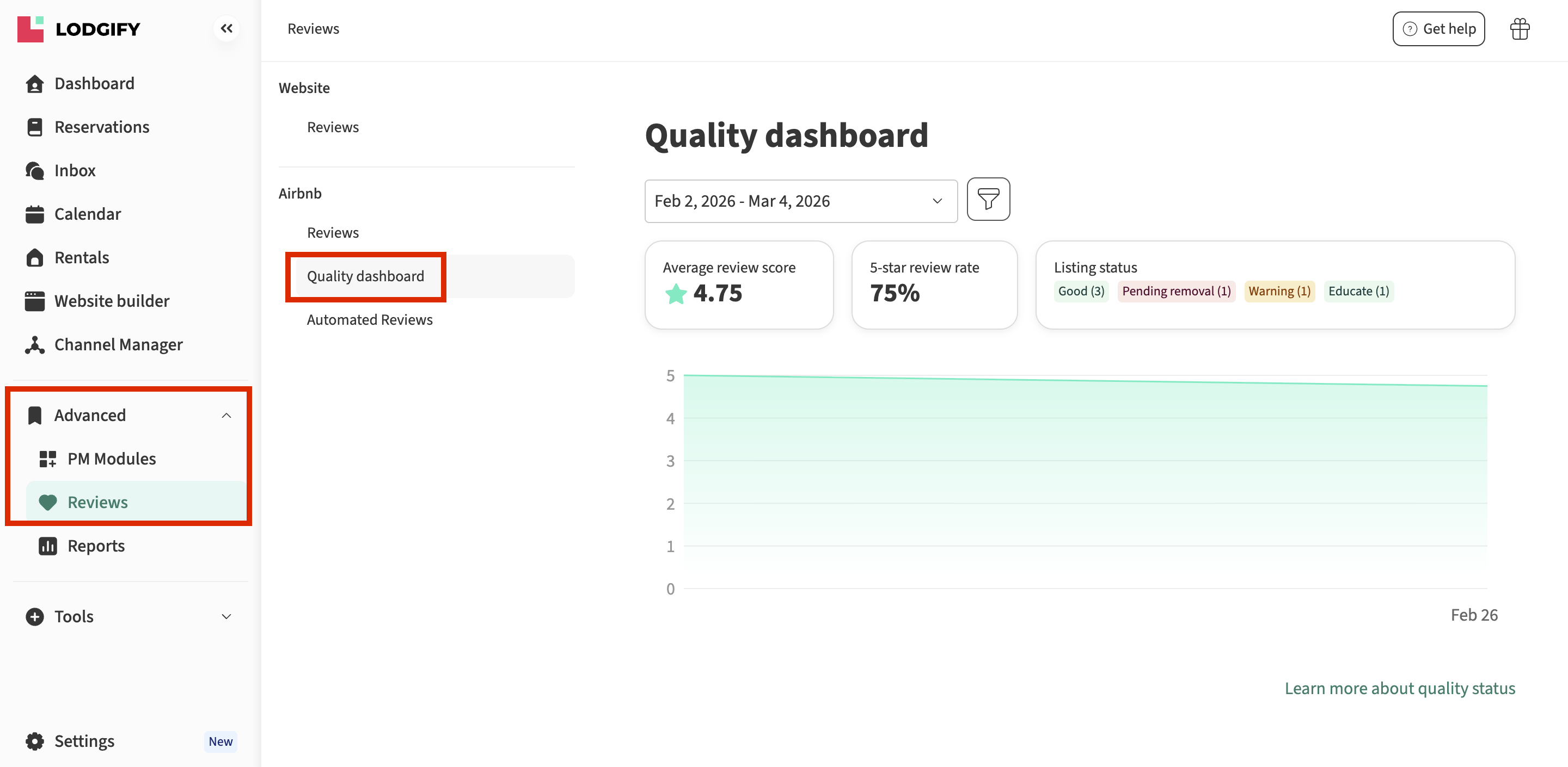 💡 Note: To access the dashboard, you must have an active Airbnb channel connected to Lodgify and have received at least one review.