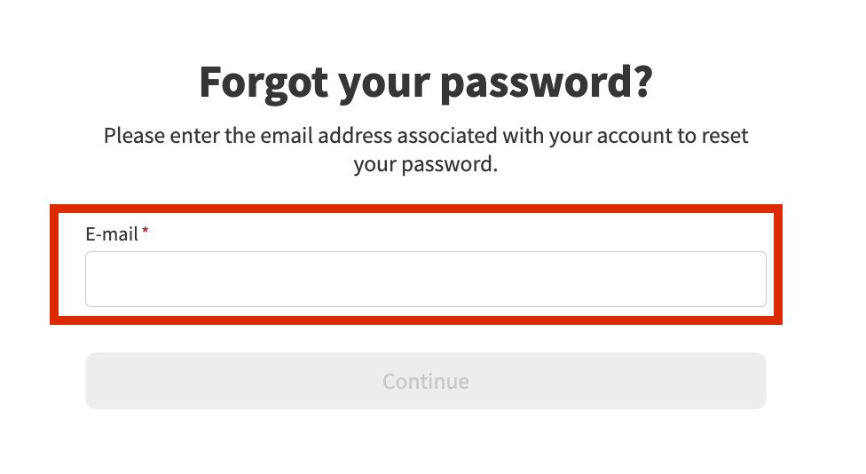 . - In the following screen, insert the email address that you use to log into your account and click Continue.