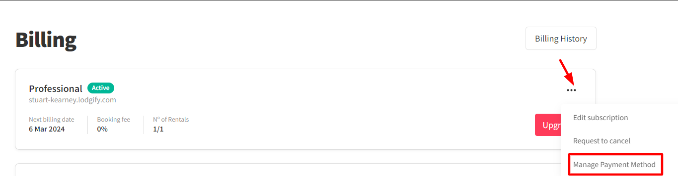 You can update your payment method for your Lodgify subscription, marketplace apps, and fee charges at any time through the billing section of your account.