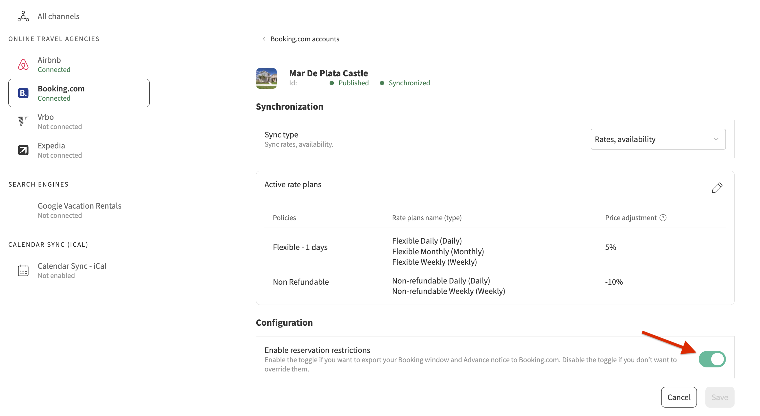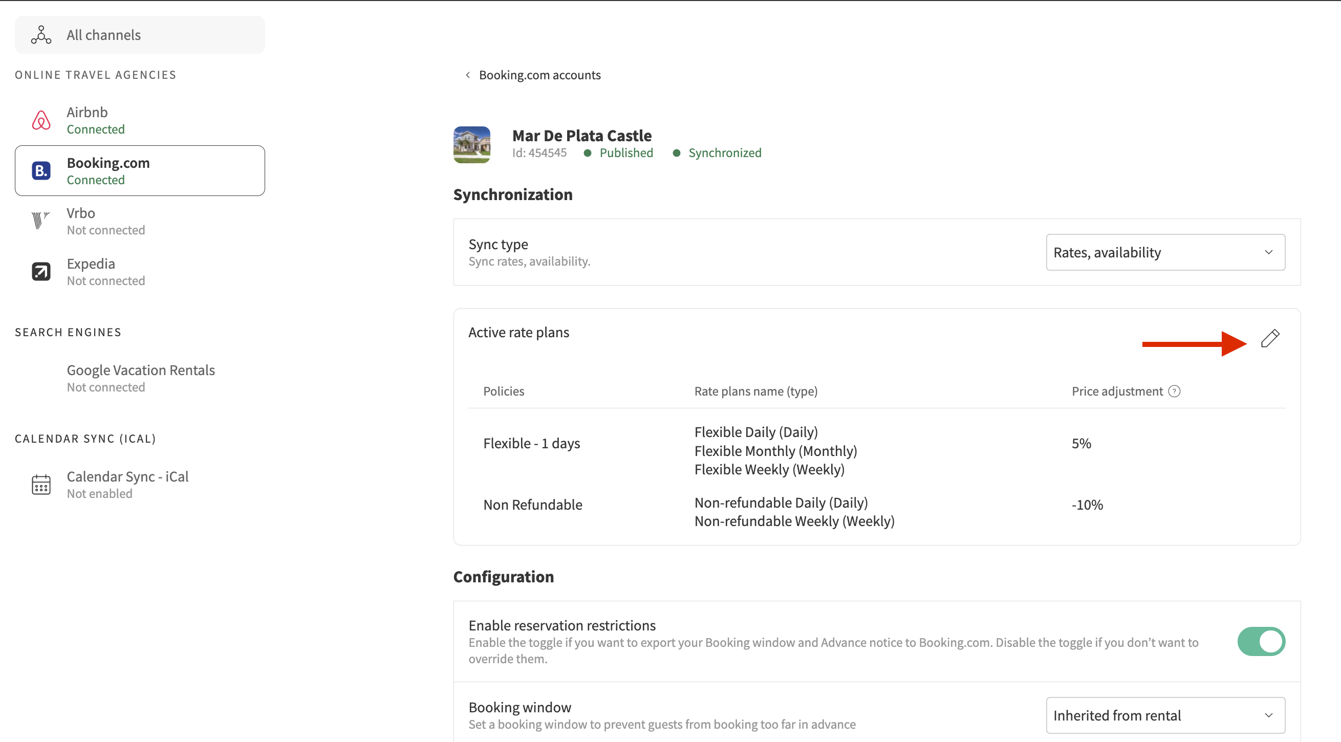 You can check whether your Booking.com listing is on full sync or on rates-and-availability-only sync. |