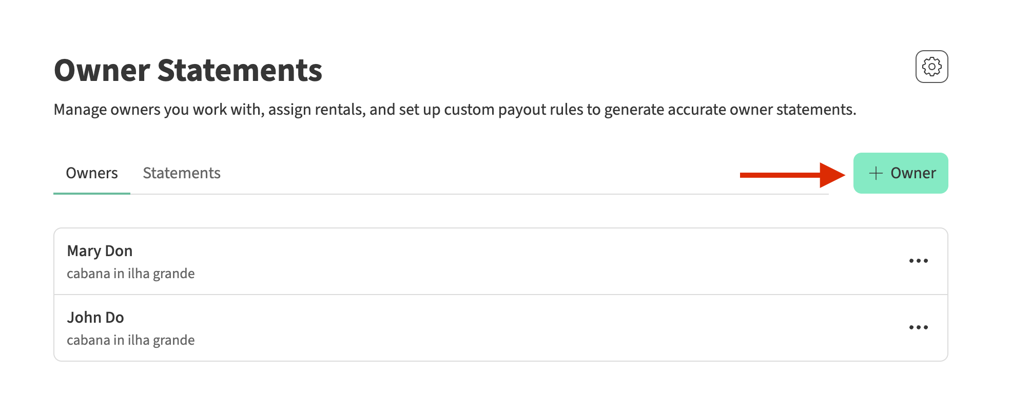 Learn how to create, edit, and delete owners in the owner statements module.