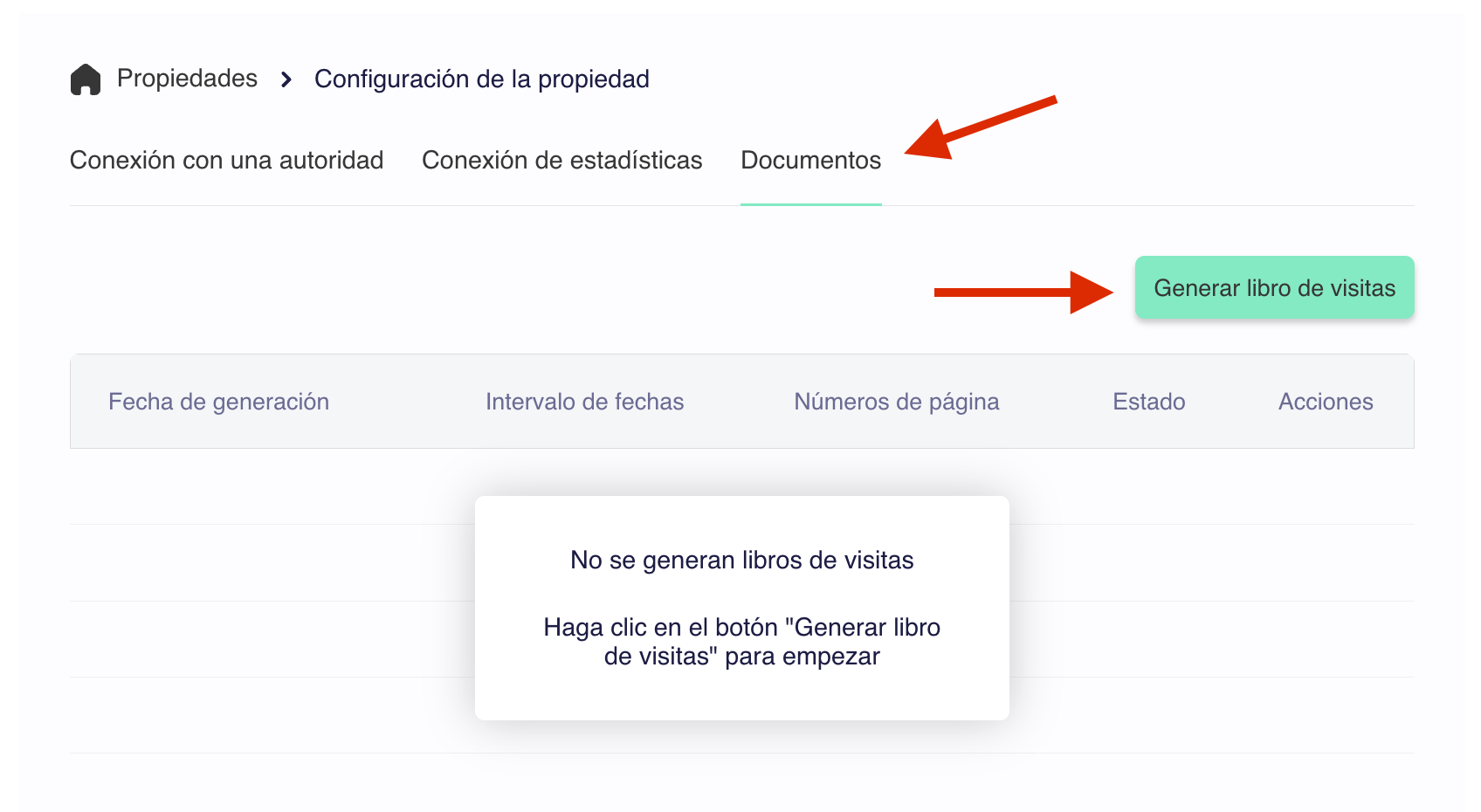 - Para descargar un libro de visitas que reúna todos los formularios de registro de viajeros de un alojamiento específico: