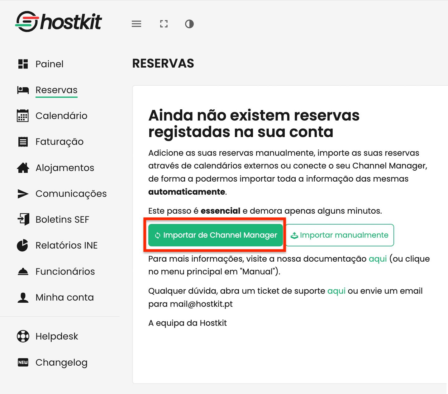 - En el menú de la izquierda, haz clic en Alojamentos y selecciona Importar de Channel Manager: