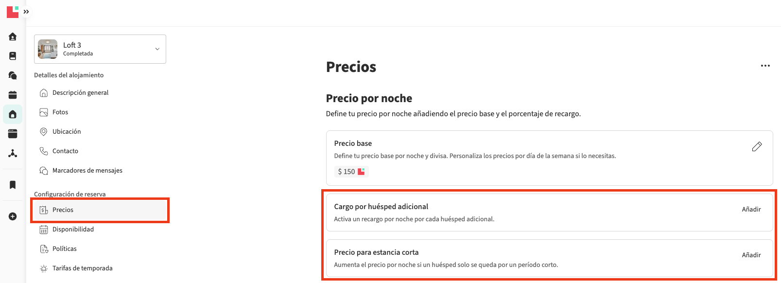 - Si no, comprueba que el ajuste específico esté habilitado dentro de la sección de Precios de tu alojamiento, en el cuadro de Precio base.