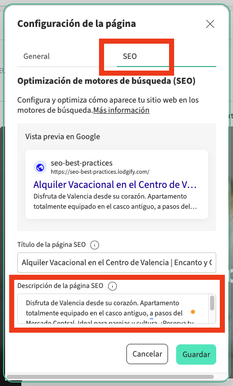Por qué es importante: El contenido de calidad aumenta tus posibilidades de aparecer en los resultados de búsqueda para consultas relevantes, y genera confianza en los huéspedes potenciales.