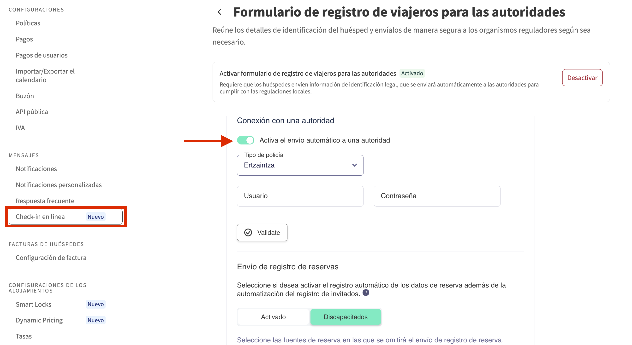 1. En Lodgify, si aún no lo has hecho, primero debes activar la funcionalidad de registro de viajeros.