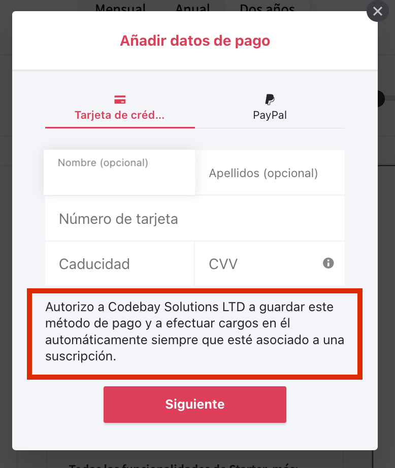 Esto se indica en nuestros Términos y condiciones aceptados al suscribirte (consulta el punto 7/e), y también se muestra cuando introduces tus datos de pago, por ejemplo durante el proceso de suscripción o al cambiar de plan: