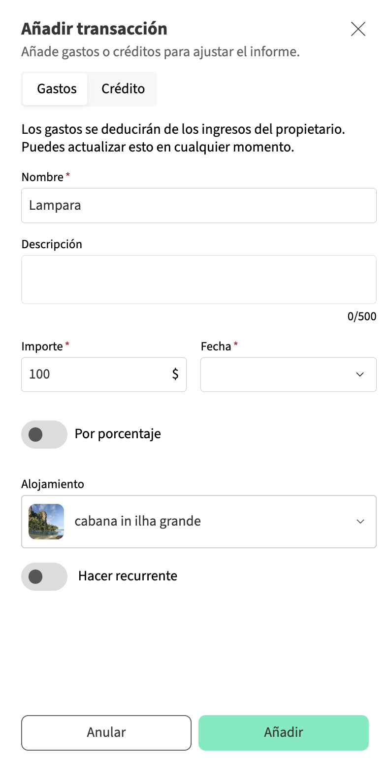 Si un huésped causa daños en tu alquiler durante su estancia y necesitas cubrir los costos de reparación o reemplazo, debes contabilizarlo en tus informes para propietarios.