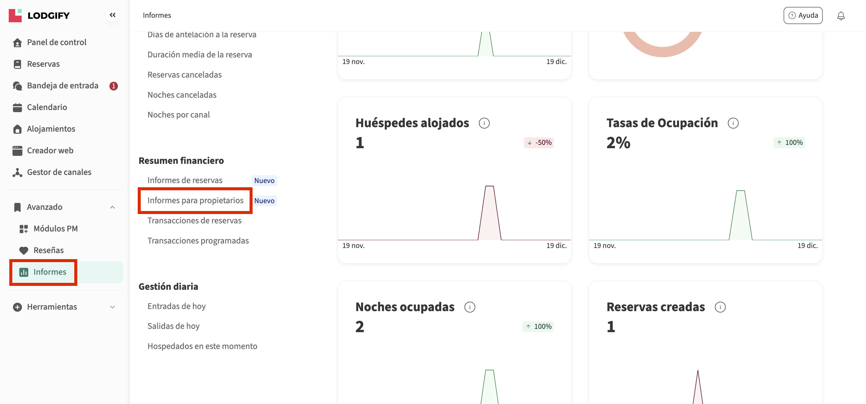 - Selecciona Informes para propietarios desde la barra lateral izquierda.