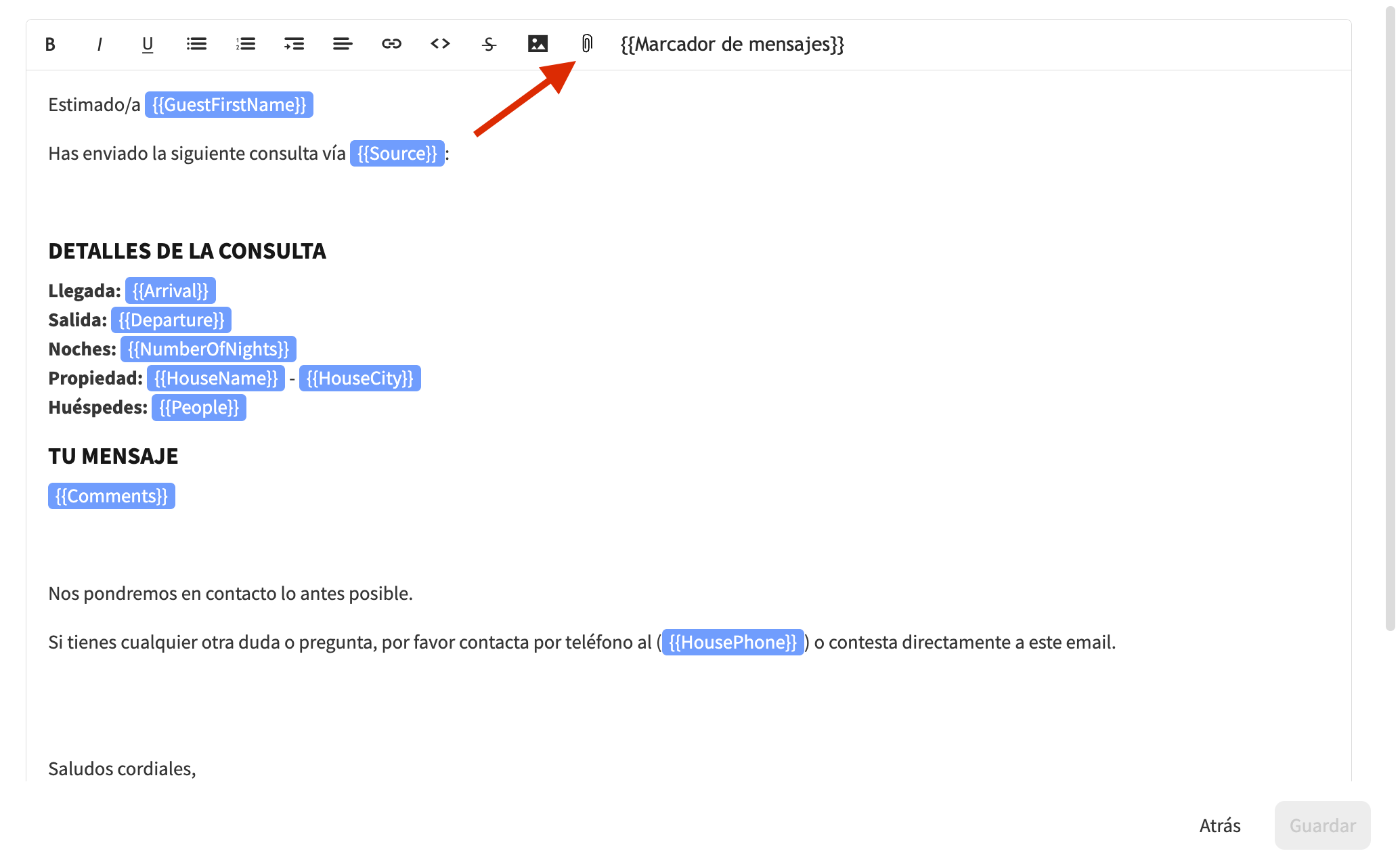- Adjuntar archivos a las respuestas automáticas para los contactos del alojamiento y de la cuenta