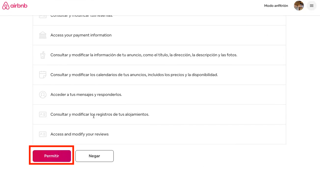 - Serás redirigido a tu cuenta de Airbnb, donde se te pedirá autorizar a Lodgify para acceder a los detalles de tu anuncio en Airbnb. Haz clic en Permitir.