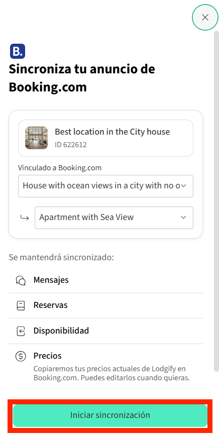 Esto permite que Lodgify sincronice tus tarifas, disponibilidad, reservas y otros ajustes con Booking.com.