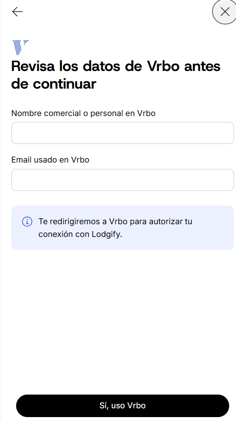 - Serás redirigido a Vrbo donde aparecerá un formulario de preconexión con: