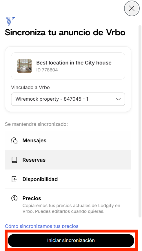 Una vez establecida la conexión, puedes empezar a sincronizar tu propiedad.
