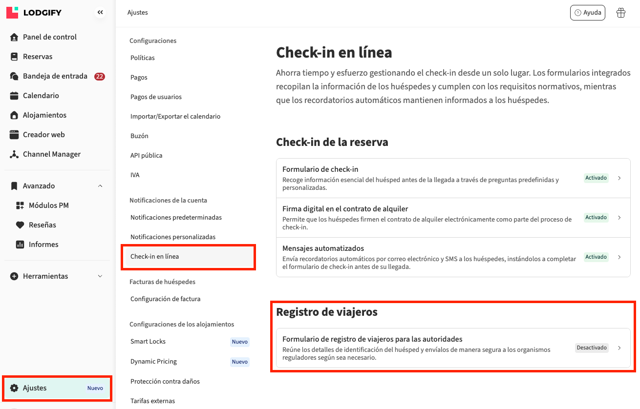 Puedes habilitar la función de registro de viajeros para automatizar la recogida de la información de los huéspedes requerida por las autoridades locales. Se adapta a los requisitos legales de cada región, asegurando que recopiles los detalles correctos. Una vez recogida la información, se envía automáticamente a las autoridades pertinentes, ahorrándote tiempo y garantizando el cumplimiento.