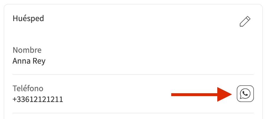 💡 Nota: Todas las notificaciones automáticas por correo electrónico se enviarán en el idioma seleccionado. Si no tienes este idioma configurado en tus correos electrónicos, se enviarán por defecto en inglés. Aprende cómo gestionar tus correos electrónicos automáticos. - Su número de teléfono preferido. Podrás contactar con tu huésped por WhatsApp si está disponible.