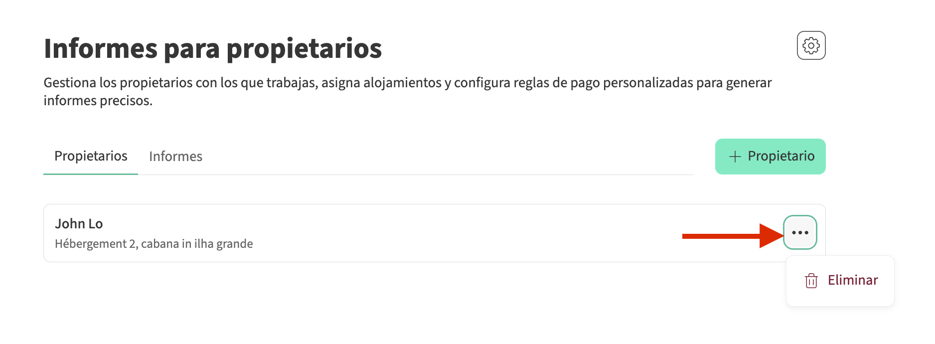 Aprende cómo crear, editar y eliminar propietarios en el módulo de informes para propietarios.