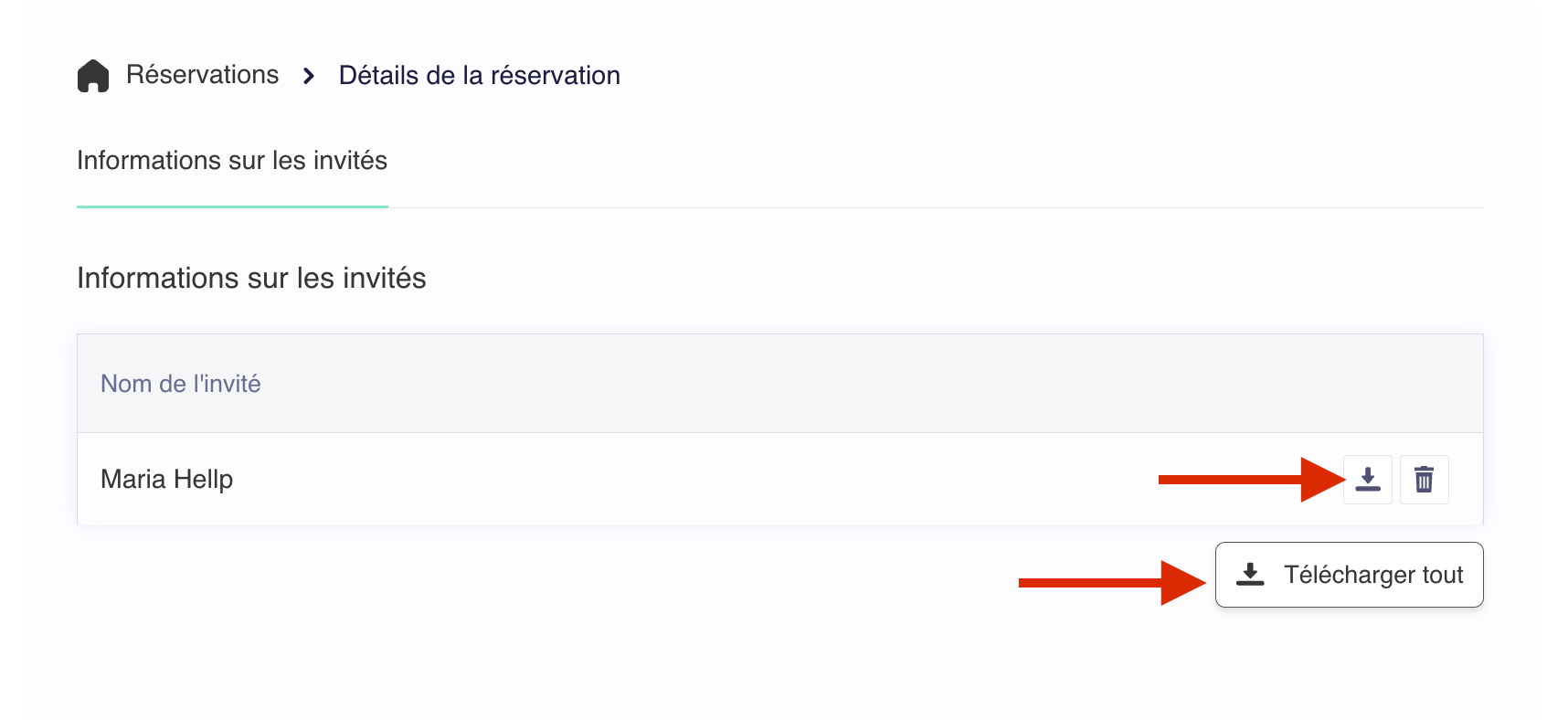 3. Vous pouvez choisir de télécharger les informations d’un seul invité ou de tous les invités associés à cette réservation.