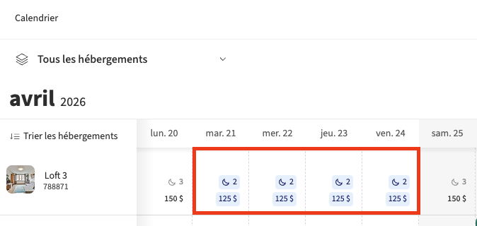 💡Note : Les Dérogations Nocturnes désactivent les Prix pour un court séjour Si des dérogations nocturnes sont appliquées à vos dates, le prix pour un court séjour ne sera pas utilisé.