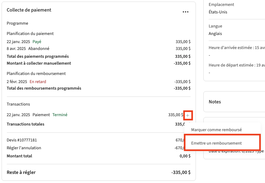 Si l'invité a payé via PayPal ou par des modes de paiement manuels, vous devrez traiter le remboursement en externe.