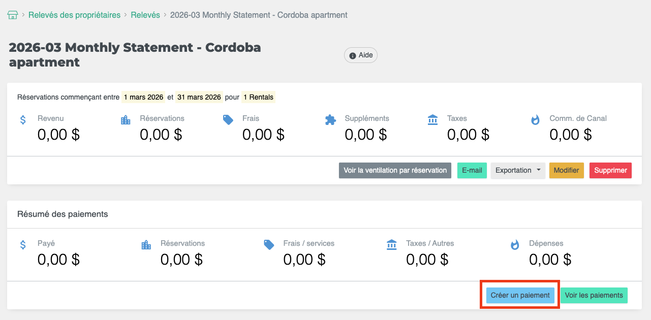 - Cliquez sur Créer un paiement depuis l'intérieur du relevé.