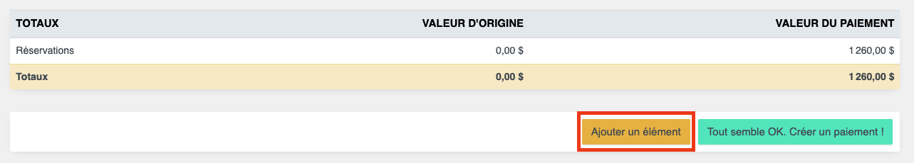 - Si aucune modification supplémentaire n'est requise, procédez à la création du paiement.