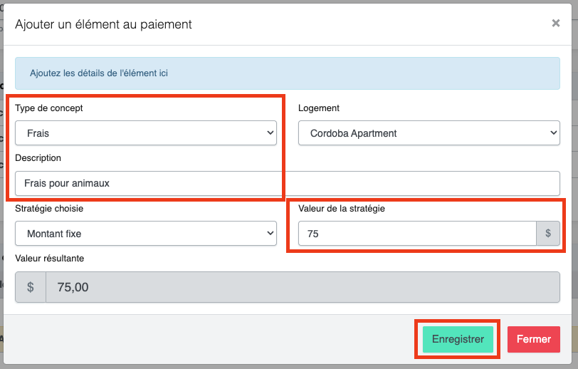 - Après avoir enregistré, le supplément apparaîtra dans le détail du paiement.