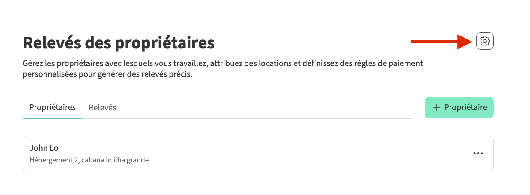 - Cliquez sur le propriétaire pour lequel vous souhaitez créer un nouveau relevé, puis sélectionnez + Relevé.