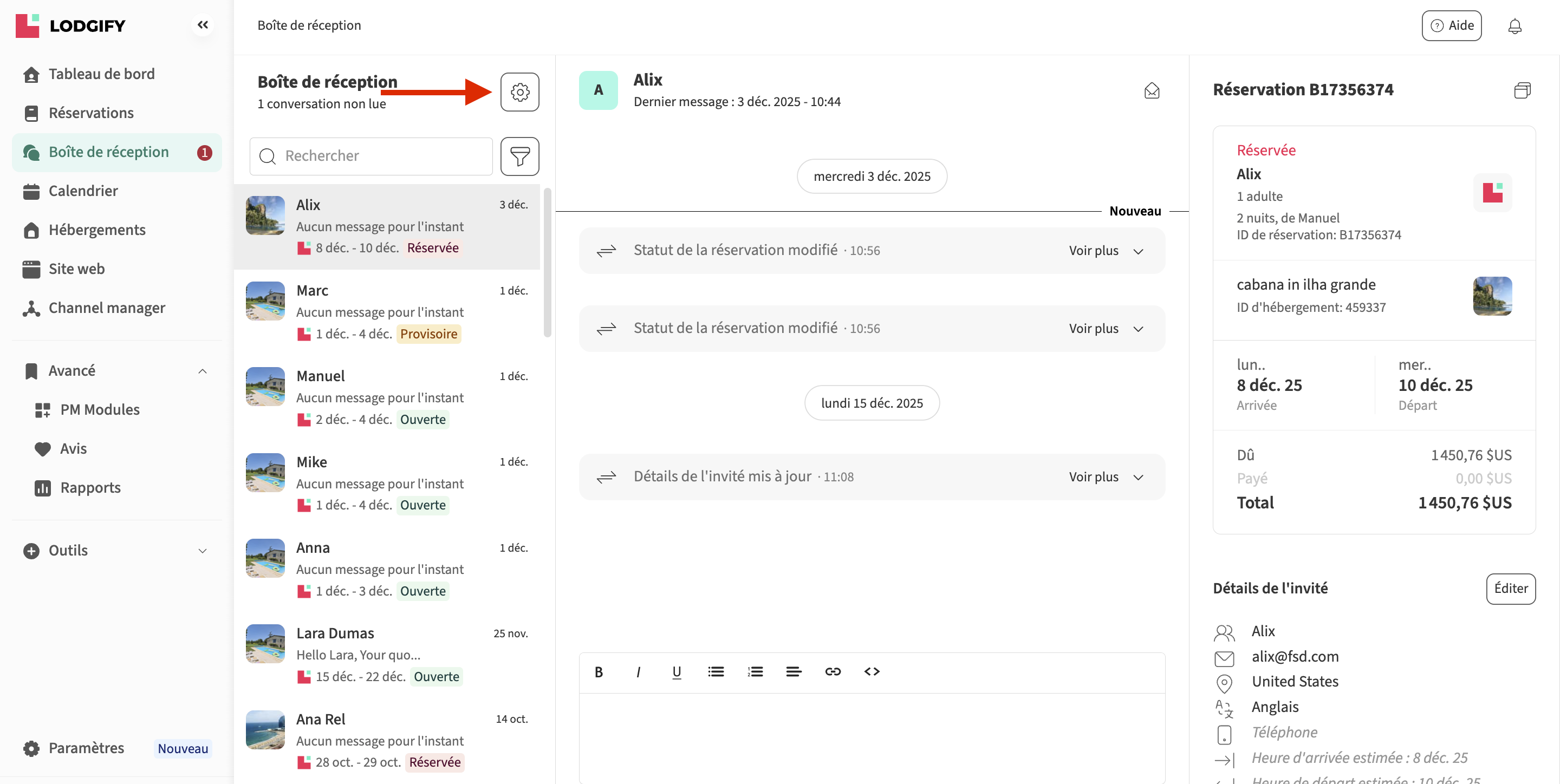 Le système de messagerie de Lodgify permet d'attacher des fichiers aux messages programmés et aux messages envoyés aux invités via le système de réservation. Dans ce qui suit, nous vous montrerons comment procéder.