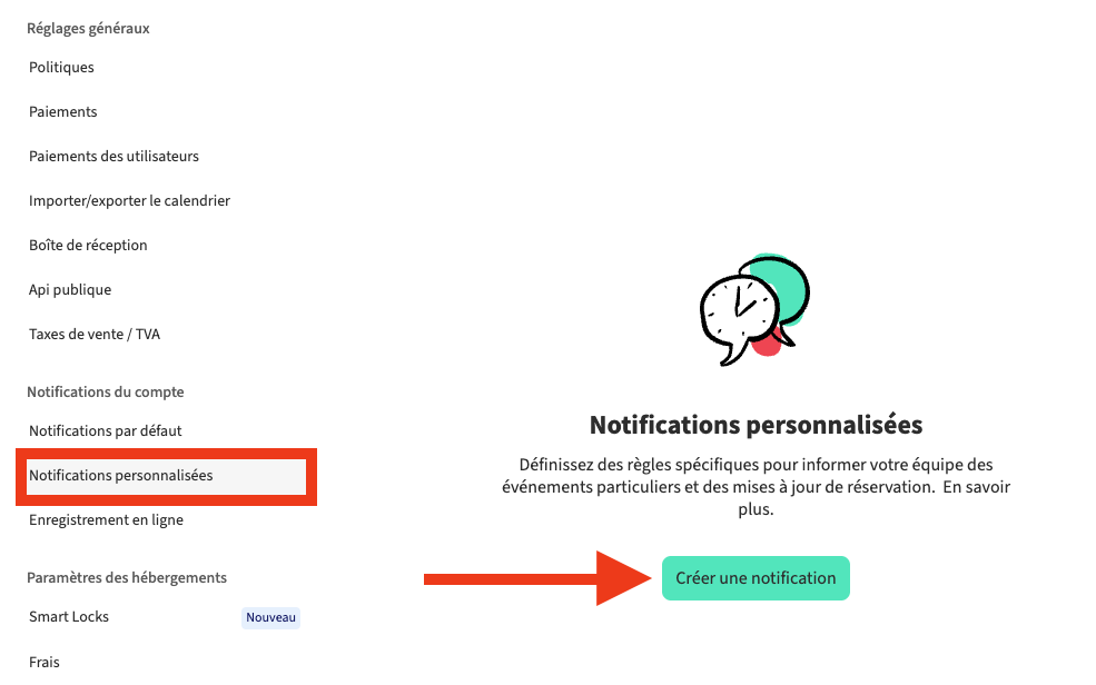 ⚠ Important : Les notifications personnalisées sont toujours envoyées dans le fuseau horaire de l'hébergement associé et peuvent prendre quelques minutes pour parvenir.