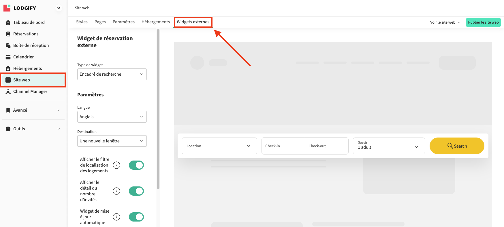- Pour en savoir plus : Utilisez le widget de réservation de Lodgify sur un site web externe.