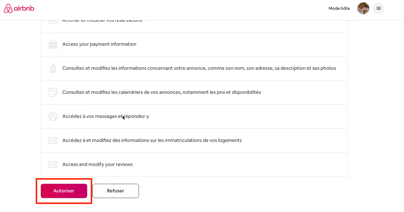 - Vous serez redirigé vers votre compte Airbnb, où il vous sera demandé d’autoriser Lodgify à accéder aux détails de votre logement Airbnb. Cliquez sur Autoriser.