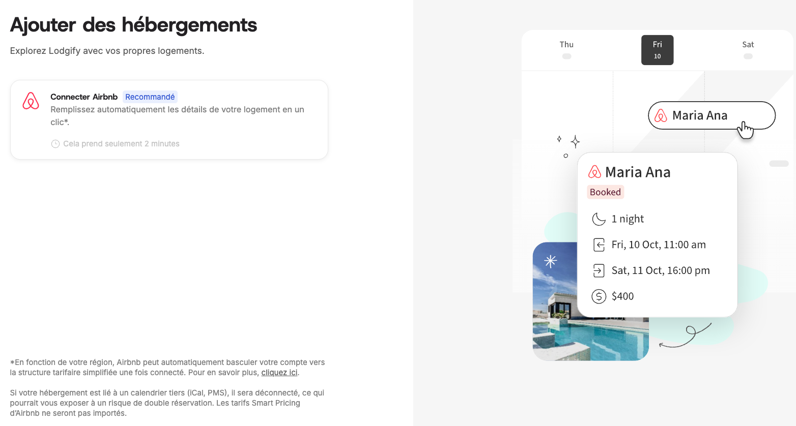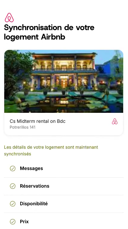Ce processus simplifié vous permet de terminer la connexion plus rapidement et de commencer à synchroniser votre logement en quelques étapes seulement.