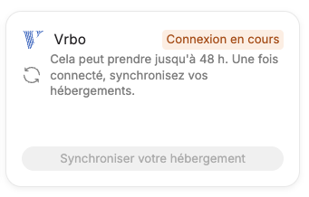 Une fois la vérification terminée du côté de Vrbo, le statut dans Lodgify passera de Connection in progress à Synchronisation en attente .
