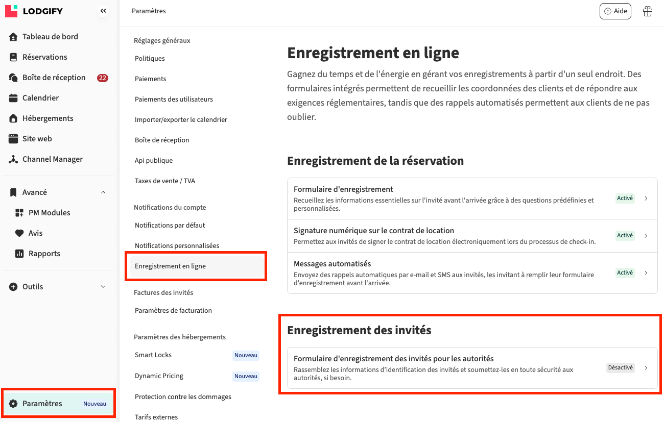 Vous pouvez activer la fonctionnalité d’enregistrement des invités pour automatiser la collecte des informations requises par les autorités locales. Elle s’adapte aux exigences légales de chaque région afin de demander les bons éléments. Une fois les informations collectées, elles sont envoyées automatiquement aux autorités concernées, ce qui vous fait gagner du temps et assure la conformité.