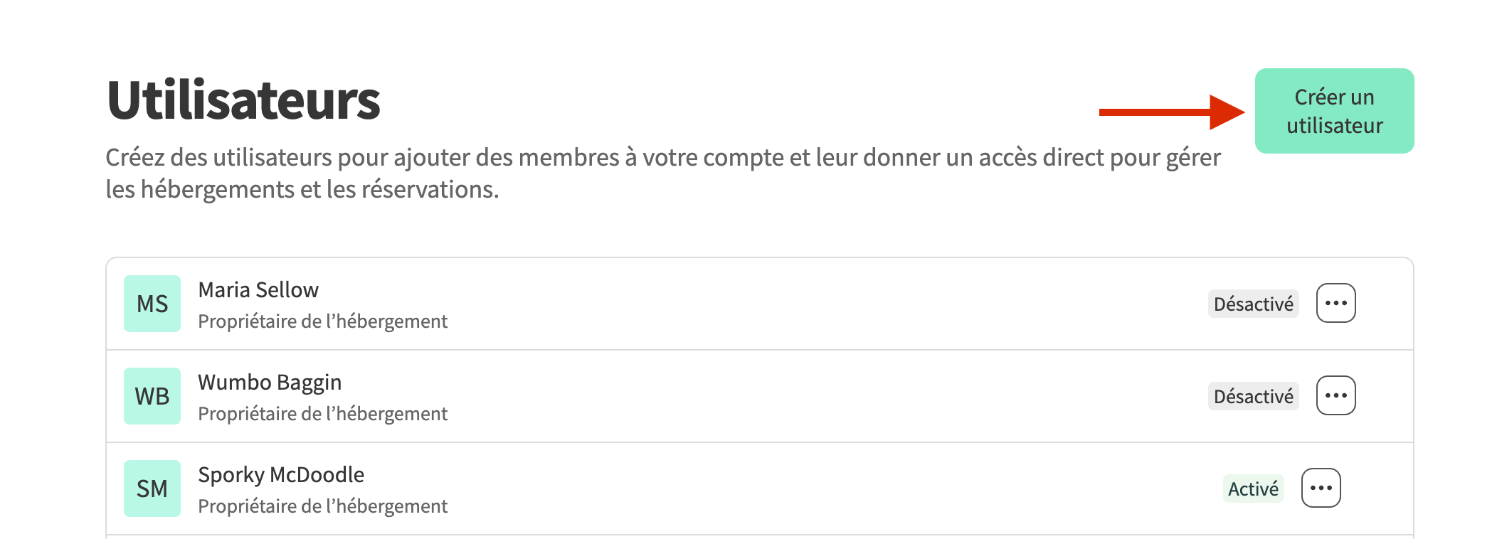 Si vous êtes un gestionnaire de location / une conciergerie qui administre divers hébergements pour différents utilisateurs, vous voudrez peut-être accorder aux utilisateurs certaines autorisations d'accès dans Lodgify et leur attribuer un ou plusieurs hébergements. Il peut s’agir, par exemple, de l’accès aux réservations pour les propriétaires, de l’accès aux données pour les membres de votre équipe, et de l’accès aux calendriers et aux tâches pour votre personnel de ménage.