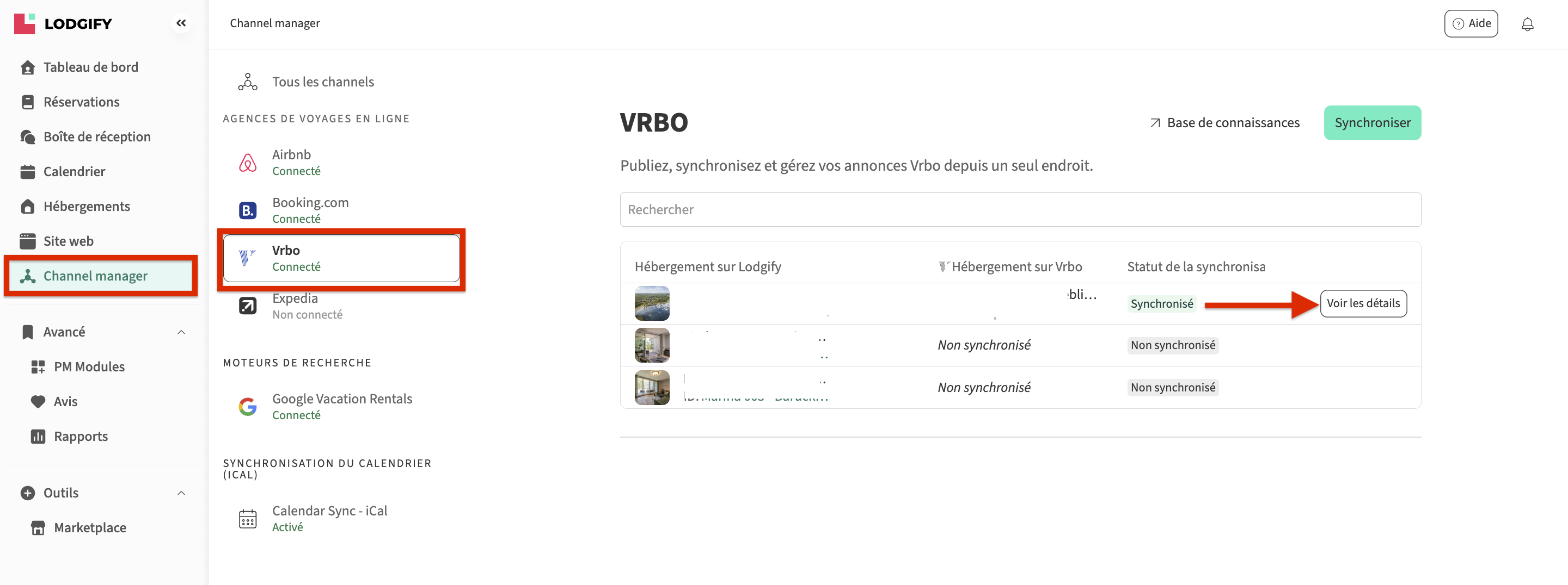 Si votre logement est connecté à Vrbo via le Channel Manager, vous pouvez voir et gérer votre connexion directement dans le Channel Manager.