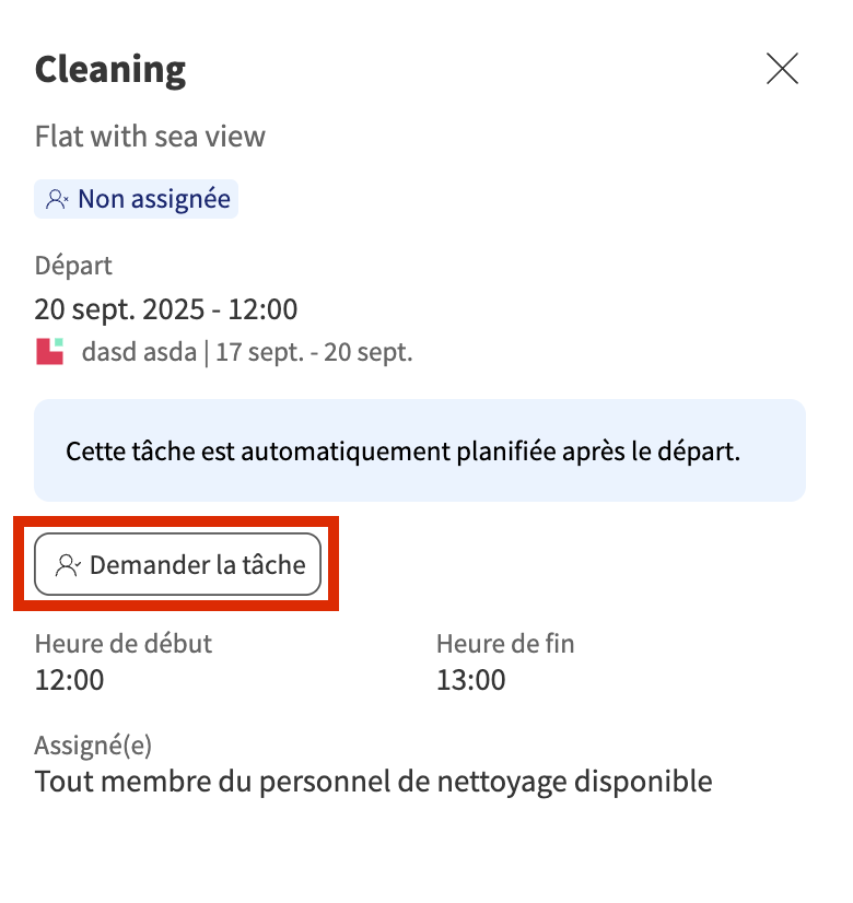- Si la tâche n’est pas encore assignée, vous pouvez cliquer sur Demander la tâche pour la prendre.
