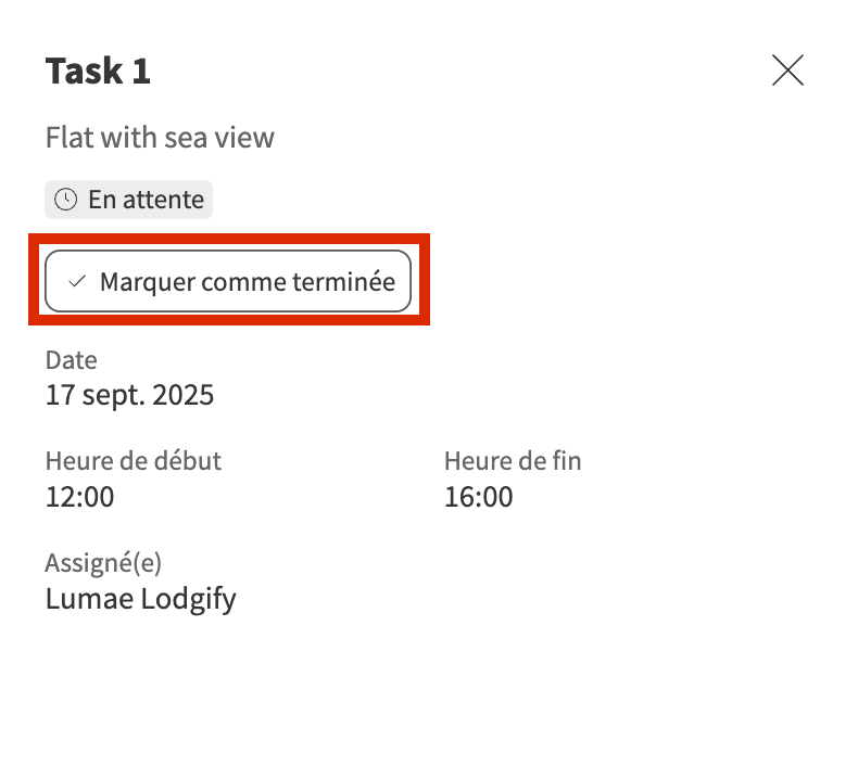 - Une fois qu’elle vous est assignée, cliquez sur Marquer comme terminée.