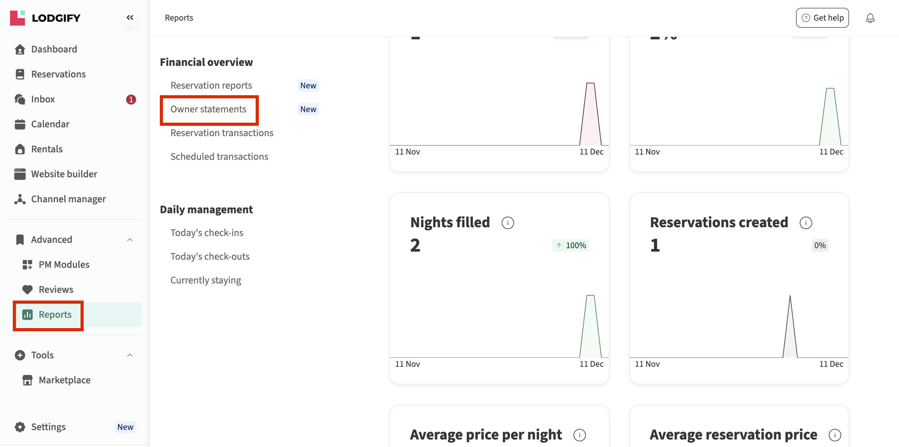 - Sélectionnez Relevés des propriétaires dans la barre latérale gauche.