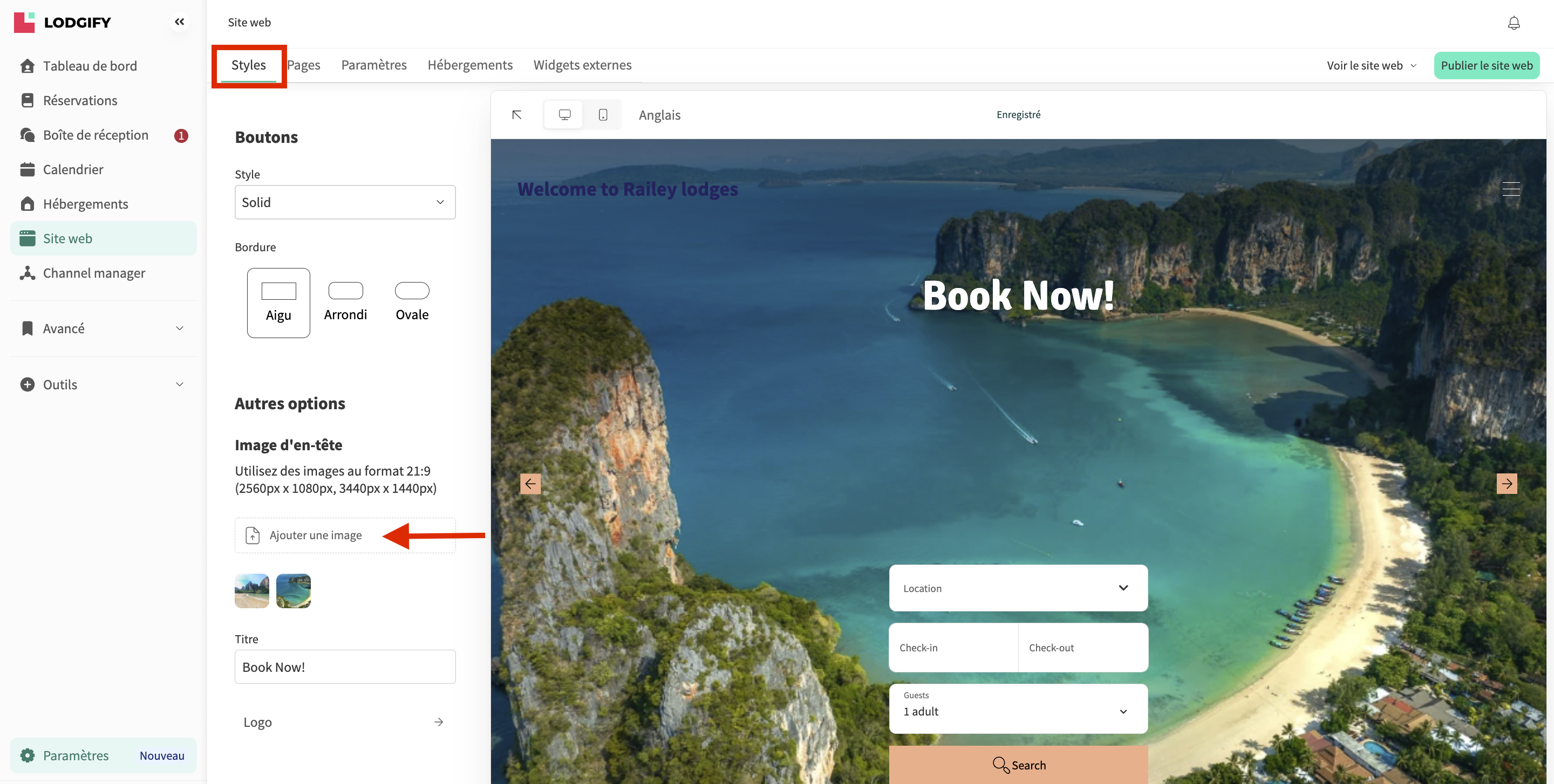 Les photos représentent votre carte de visite lorsque les invités arrivent sur votre site web. Nos modèles sont conçus pour mettre en valeur vos hébergements grâce à de grandes photos d'arrière-plan, des galeries d'images et des diaporamas. Découvrez les tailles d'image, comment télécharger et organiser votre galerie, et comment configurer le diaporama ou l'image d'arrière-plan de votre page d'accueil.