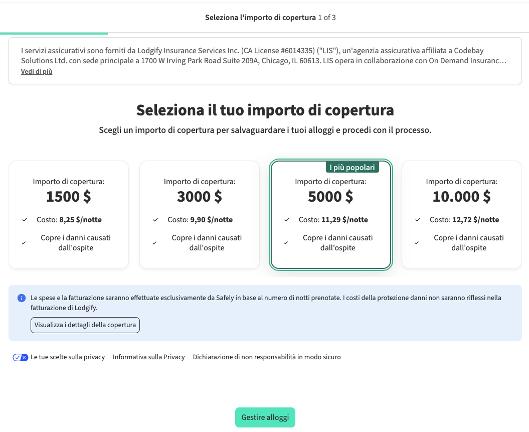 💡 Nota: Ogni alloggio può avere un importo di copertura diverso, che puoi selezionare nel passaggio successivo. -