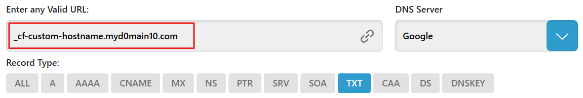 - Per confermare che siano stati disabilitati, utilizza uno strumento di ricerca DNS pubblico (raccomandiamo DNS Lookup)