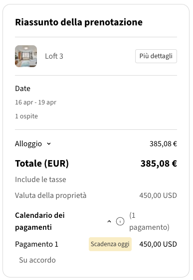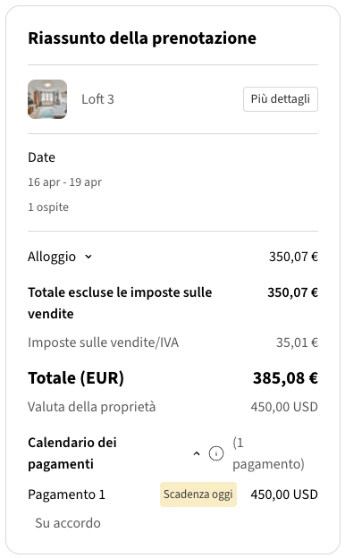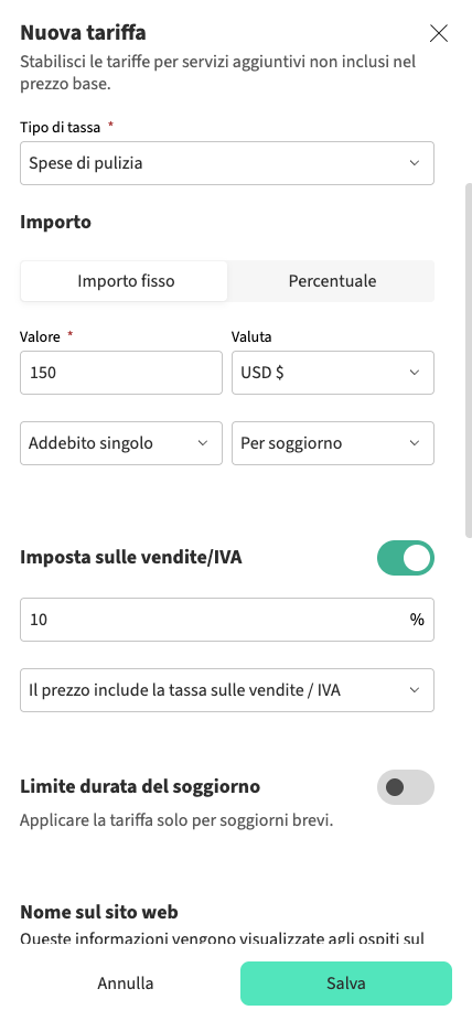 Puoi scegliere come l'imposta appare agli ospiti durante il processo di pagamento: