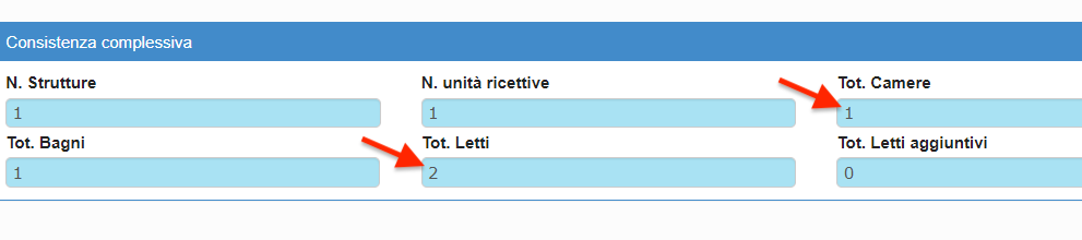 Clicca sull’alloggio corrispondente e troverai il numero di camere (Tot. Camere) e il numero di letti (Tot. Letti).